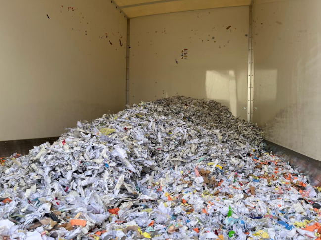 When you use professional Drive Thru Shredding, the paper particles are captured in a sealed container on the truck. They are then baled and transported to certified UK paper mills where 100% of the material is recycled into new paper products.